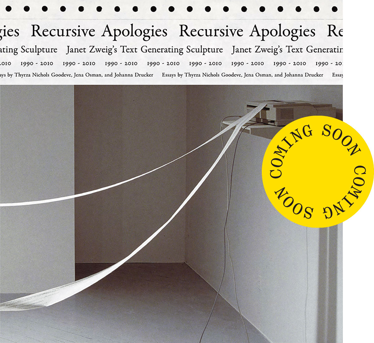 Richly illustrated, Recursive Apologies: Janet Zweig’s Text Generating Sculpture presents these works alongside the sources that inspired them. With a recursive design by Ben Denzer that mirrors the very concepts it explores, the book offers both a visual archive and a reflection on our ongoing relationship with thinking machines.